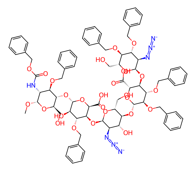 英文名 a-D-Glucopyranoside,Methyl O-2-azido-2-deoxy-3,4-bis-O-(phenylMethyl)-a-D-glucopyranosyl-(14)-O-2,3-bis-O-(phenylMethyl)-b-D-glucopyranuronosyl-(14)-O-2-azido- 2-deoxy-a-D-glucopyranosyl-(14)-O-3-O-(phenylMethyl)-a-L-idopyranu ronosyl-(14)-2-deoxy-2