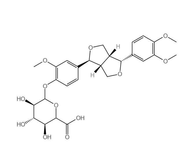 英文名 (3S,4S,5R)-6-(4-((1S,3aR,4R,6aR)-4-(3,4-dimethoxyphenyl)tetrahydro-1H,3H-furo[3,4-c]furan-1-yl)-2-methoxyphenoxy)-3,4,5-trihydroxytetrahydro-2H-pyran-2-carboxylic acid