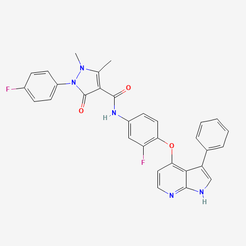 英文名 N-(3-fluoro-4-((3-phenyl-1H-pyrrolo[2,3-b]pyridin-4-yl)oxy)phenyl)-2-(4-fluorophenyl)-1,5-dimethyl-3-oxo-2,3-dihydro-1H-pyrazole-4-carboxamide.