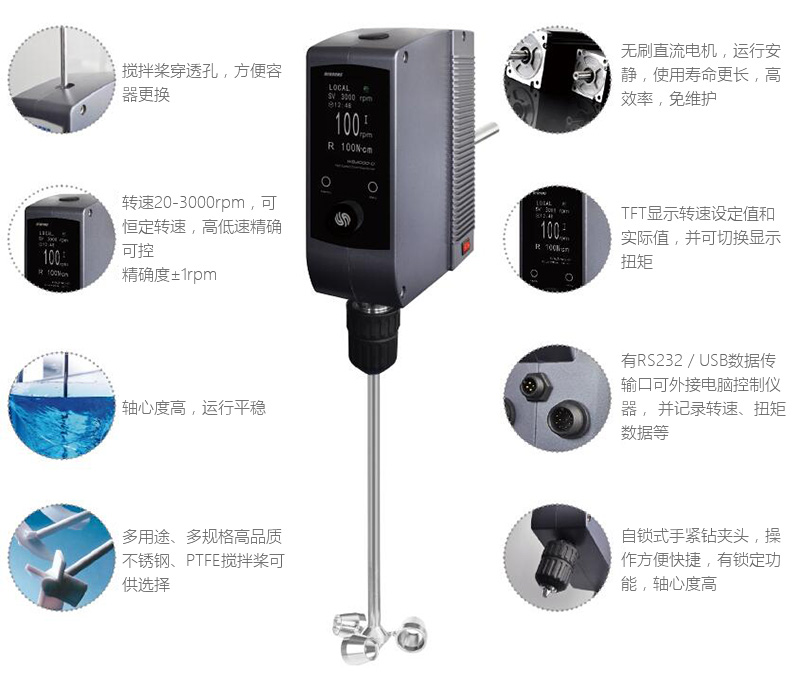 * 采用免维护无碳刷直流马达,适合实验室长时间高负荷工作