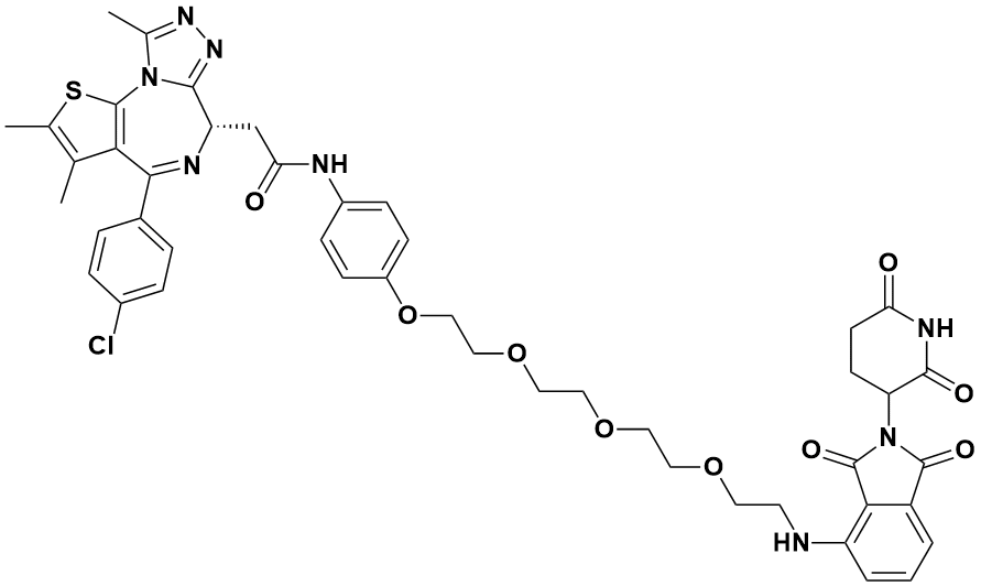 - 2-((S)-4-(4-chlorophenyl)-2,3,9-trimethyl-6H-thieno[3,2-f][1,2,4]triazolo[4,3-a][1,4]diazepin-6-yl)-N-(4-(2-(2-(2-(2-(2-(2,6-dioxopiperidin-3-yl)-1,3-dioxoisoindolin-4-ylamino)ethoxy)ethoxy)ethoxy)ethoxy)phenyl)acetamide