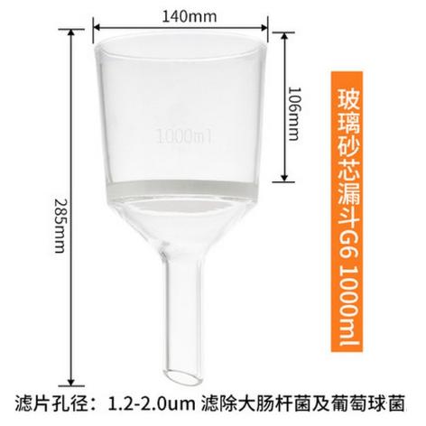 (帆船ds)玻璃砂芯漏斗 1L,G6;孔径1.2-2.0um;接管外径30mm;1只/盒信息二维码