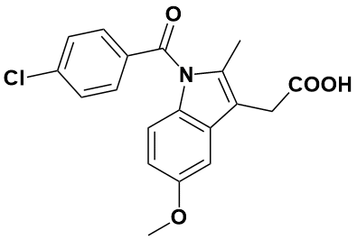 - 消炎痛;吲哚美辛;抗炎吲哚酸;1-对氯苯甲酰-5-甲氧基-2-甲基吲哚乙酸;茚甲新;引朵正-乙醯對甲氧基苯胺;消炎痛,吲哚美辛;1-(4-氯苯甲酰基)-5-甲氧基-2-甲基-1H-吲哚-3-乙酸